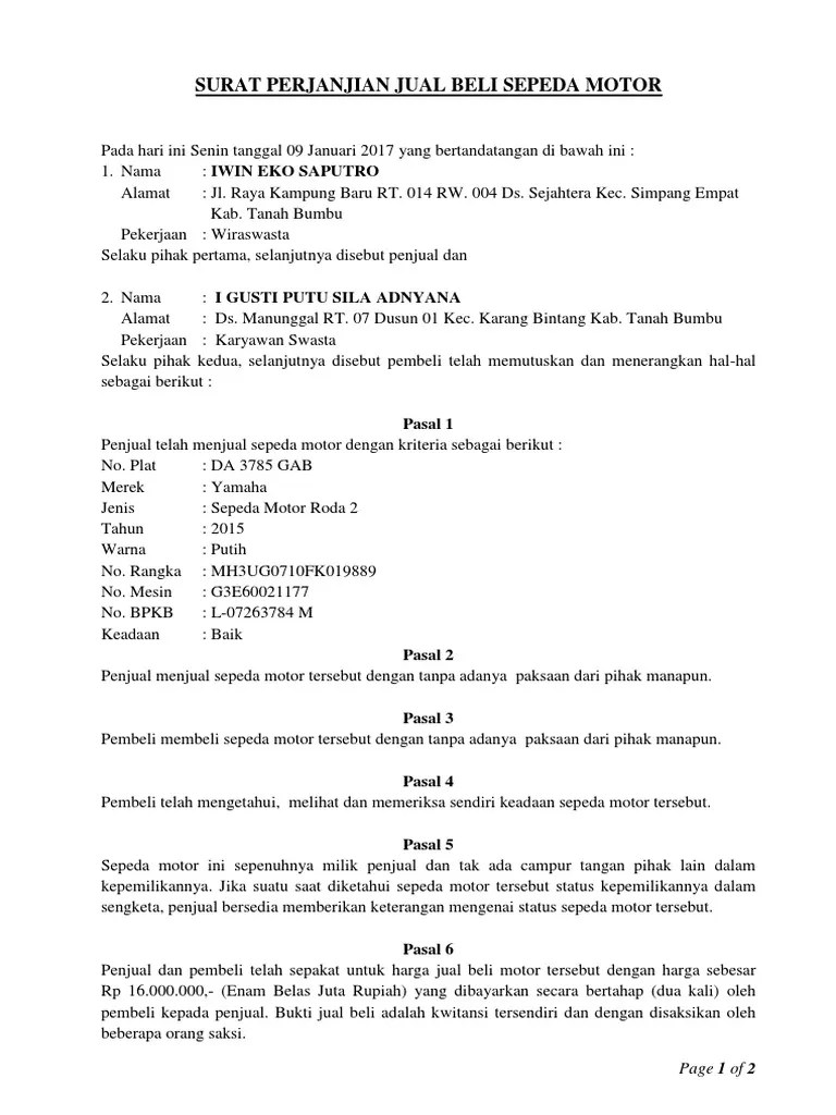 4 contoh surat perjanjian jual beli motor untuk penjual dan pembeli surat perjanjian jual beli motor merupakan surat yang berisi informasi tentang transaksi dan ketentuan ketentuan yang ada.